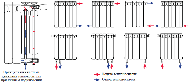 батареи. Отличием моделей является особый вертикальный канал секций, отсутствие сварки технологического отверстия, для закрытия которого применяются прокладки и заглушки. Вертикальный канал