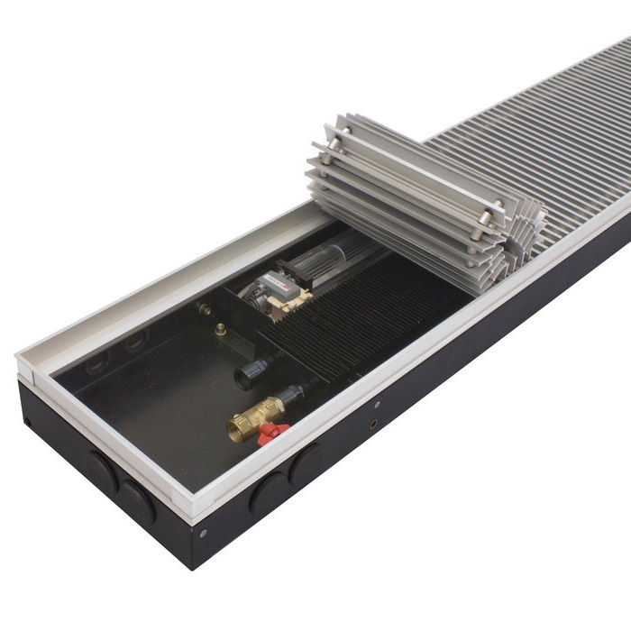 Внутрипольные конвекторы серии ITTB с принудительной конвекцией – это конвекторы, встраиваемые в пол, оснащенные вентиляторами, работающими от электросети. Вентилятор позволяет увеличить