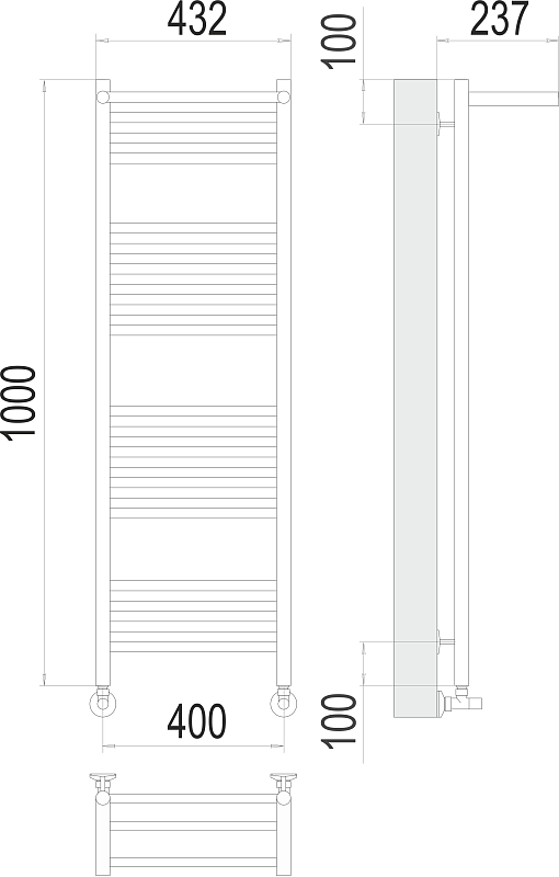 Terminus Аврора с полкой П20 400х1000 Водяной полотенцесушитель