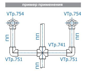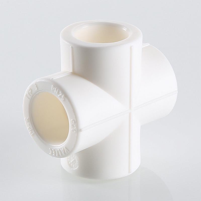 (VTp.741.0) Фитинг для соединения четырех полипропиленовых труб равного диаметра (крестовина). Монтаж производится методом раструбной сварки.